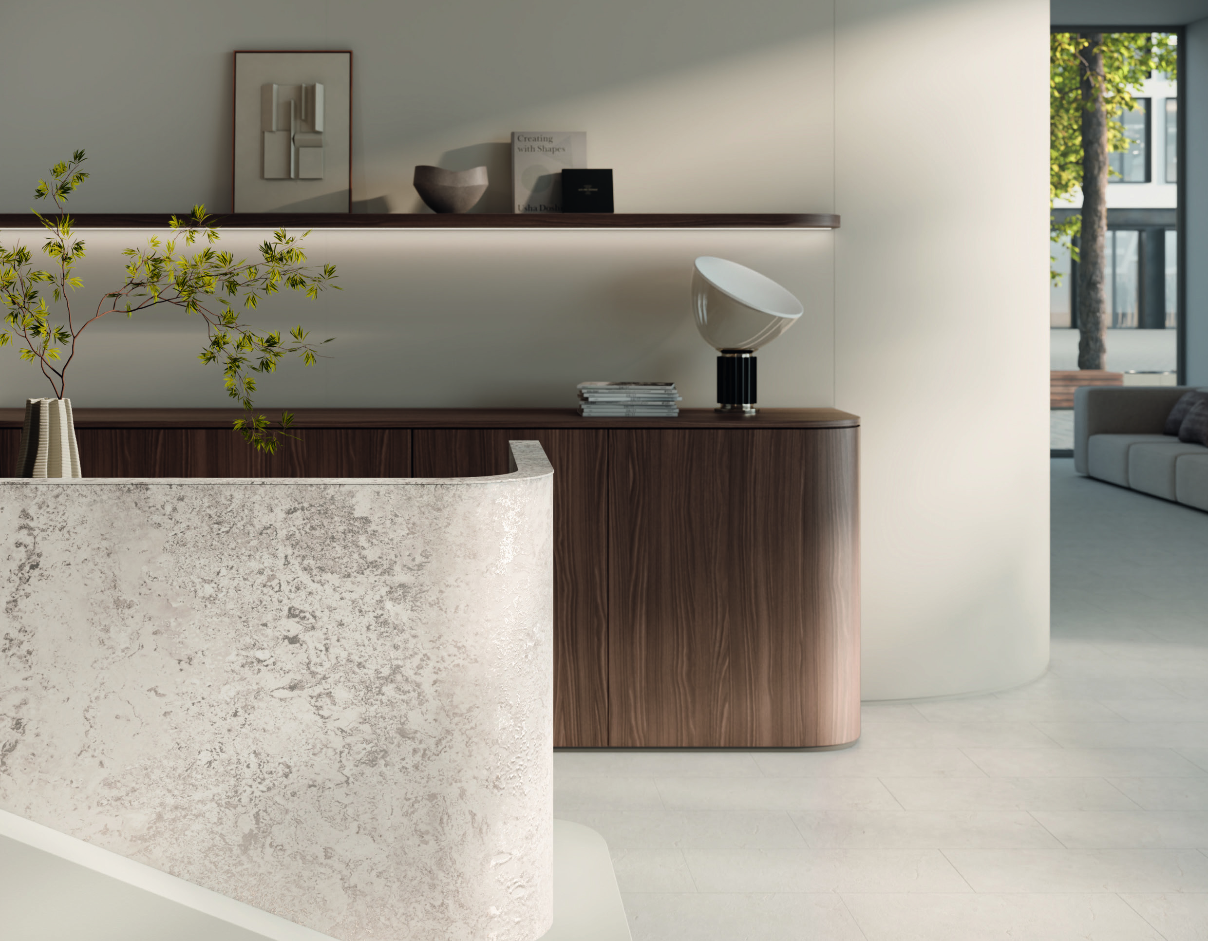A 26+ kollekcióban bővült a matt lakkozott lapok uni dekorválasztéka, további 8 új dekorral bővült az eddig is széles kínálat. Az új színek könnyen kombinálhatók egymással és más dekorokkal is. A PerfectSense Ambiance a legújabb innováció a PerfectSense lakkozott termékek között. A matt-fényes hatás teszi különlegessé, amelyet a szinkronizált struktúramélység is kiemel. Az F199 Fekete Ambiance Márvány kivitel szupermatt felületét kifinomult arany színezetű erezetzárványok emelik ki. Az F128 Fekete Ambiance Gránit és az F129 Bézs Ambiance Gránit dekorban a fényes részek tökéletesen illeszkednek a bársonyos matt felülethez. A részleges fényes elemek tökéletes összehangolása a kőreprodukciók dekorképével a megjelenés és a tapintás révén egyedülálló élményt teremt.