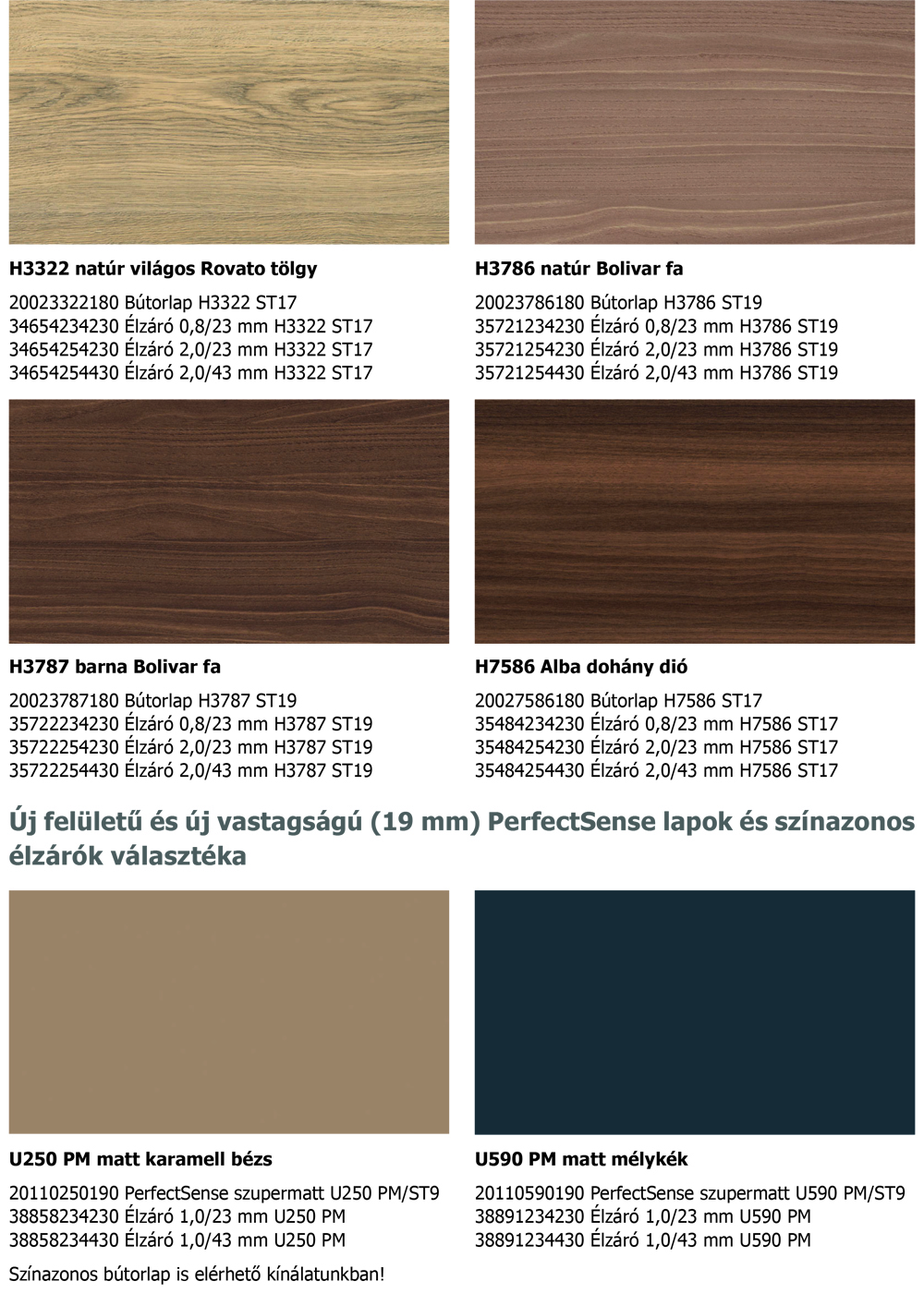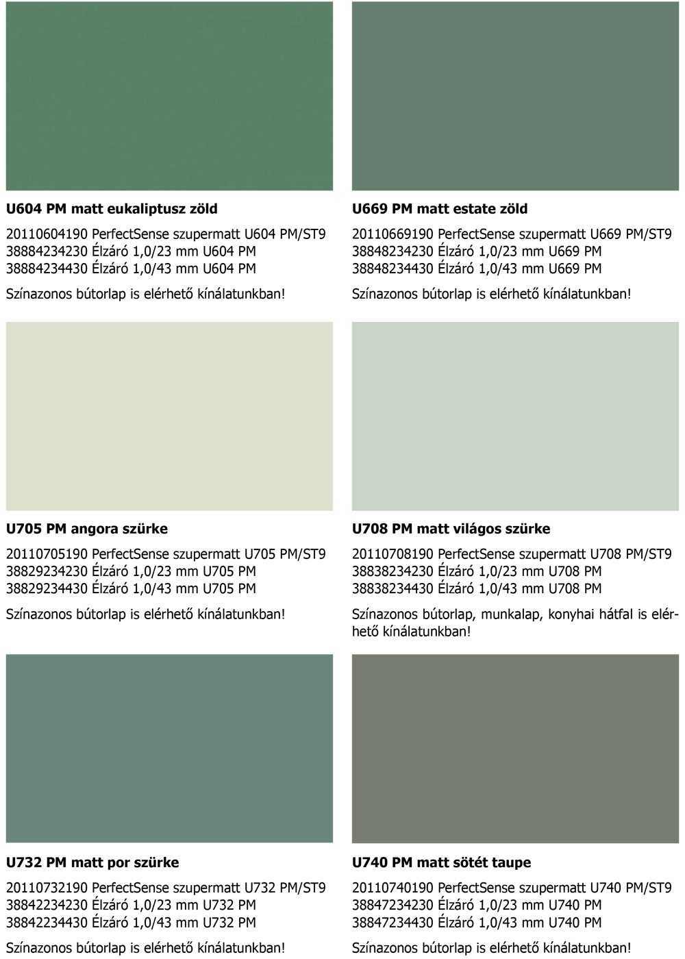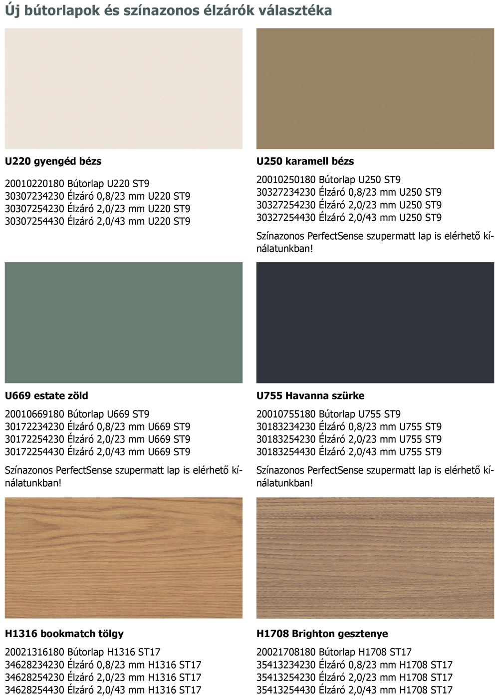 - 11 új PerfectSense dekor, ebből 9 új UNI dekor PM kivitelben, valamint 2 új, PA felület