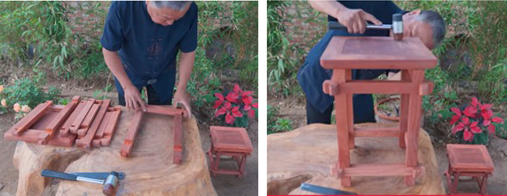 Ősi kinai technikával, Luban zárral készült, szintén 13 darabból álló kis szék