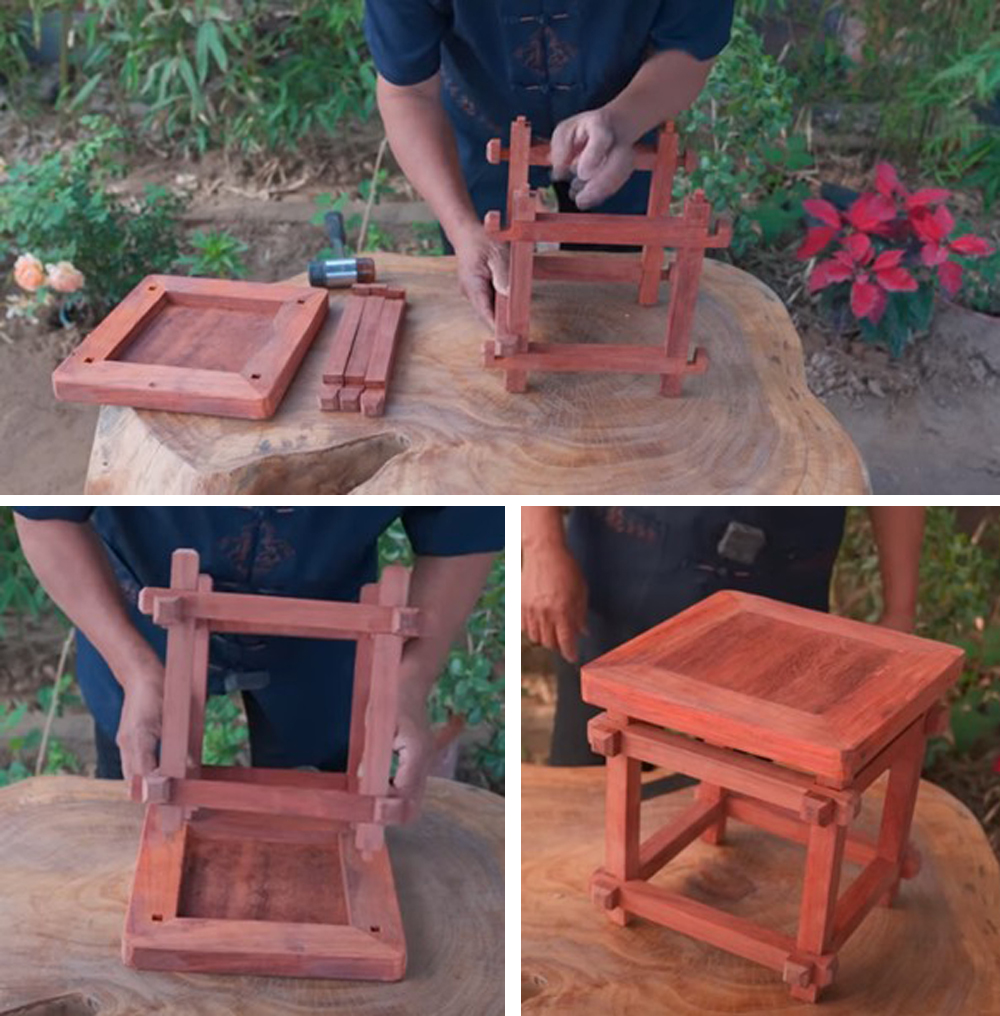 鲁班锁原理打造桌子和凳子,可拆卸组装,方便携带【阿木爷爷 Grandpa Amu】